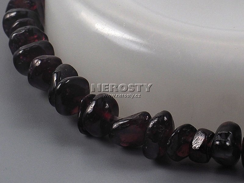 Sorry, currently is available only Czech description. Granátový náramek poskládaný z valounků vínově červenofialového almandinu.